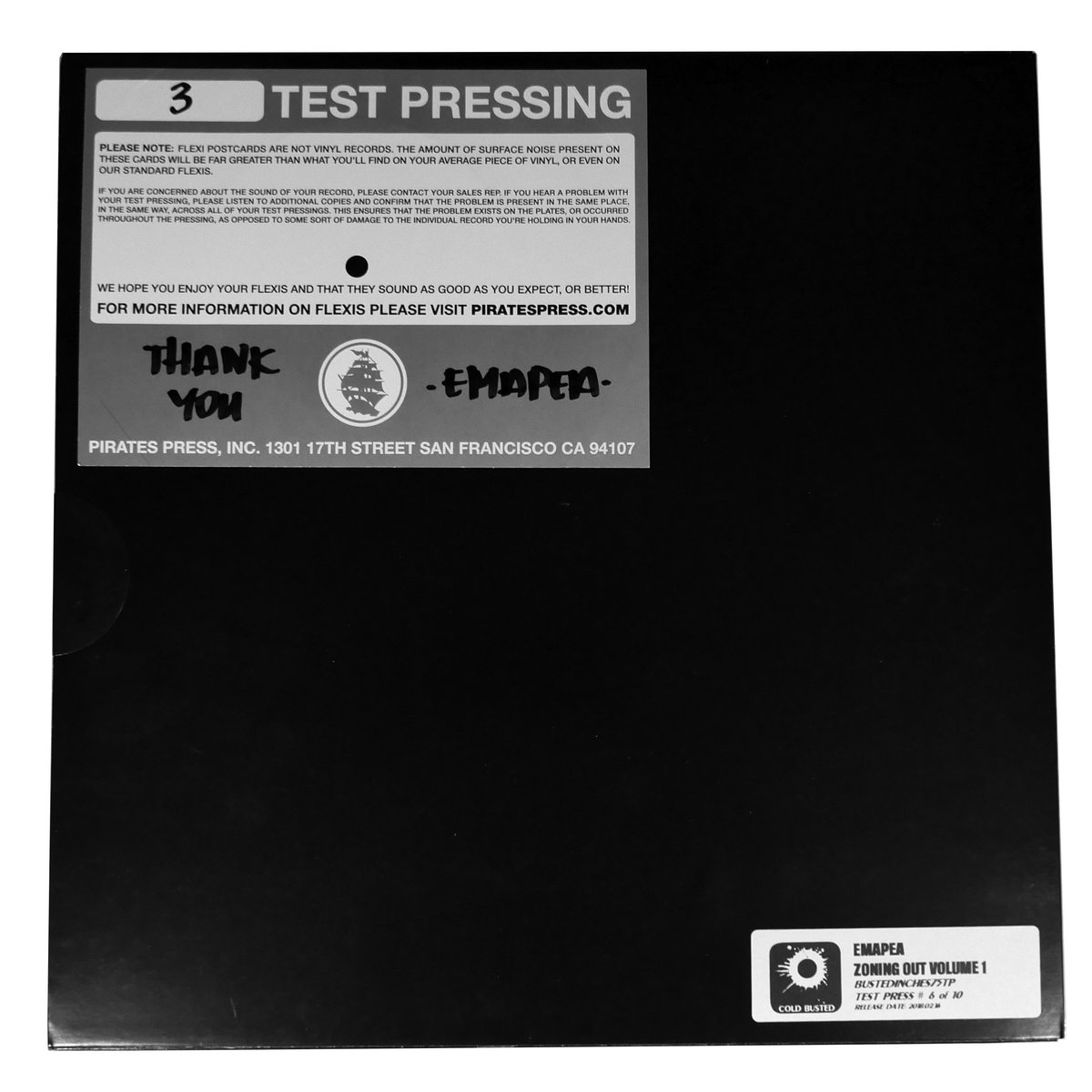 Vinyl included a 3" round Emapea sticker on shrink wrap that peels off plus a maze printed on the innersleeve for Zoning Out while listening to the album.